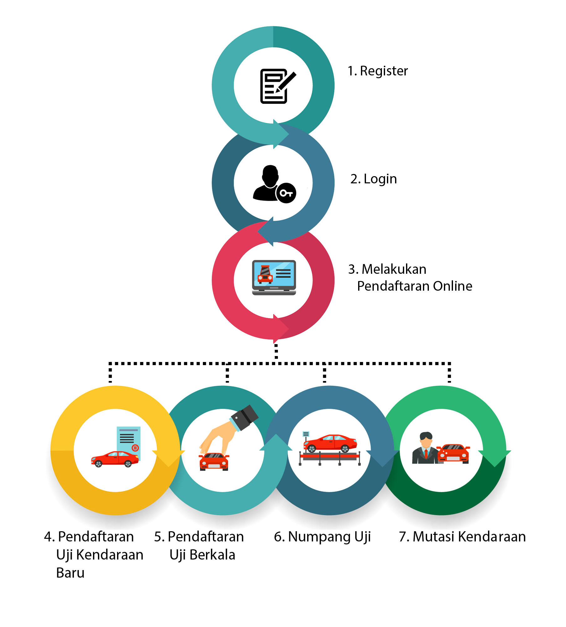 Sebelum melakukan pendaftaran online, pemilik kendaraan harus melakukan registrasi terlebih dahulu dengan mengklik tombol Register yang ada pada pada halaman utama website, selanjutnya isi form sesuai ketentuan. Setealah proses register selesai pemilik kendaraan dapat melakukan login dengan username dan password yang telah dibuat pada saat registrasi